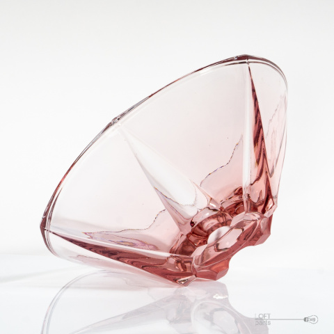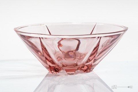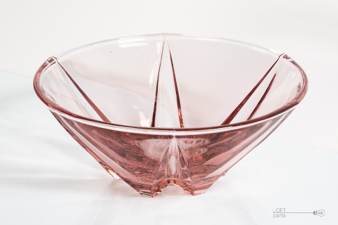 Fioletowa misa wyprodukowana w Hucie Szkła Gospodarczego Ząbkowice. W katalogu huty nosi numer 14 K V.