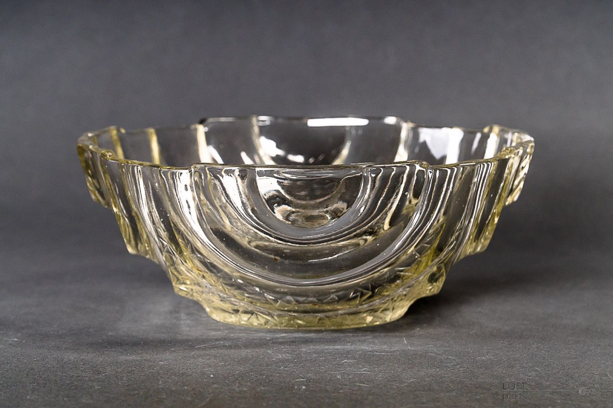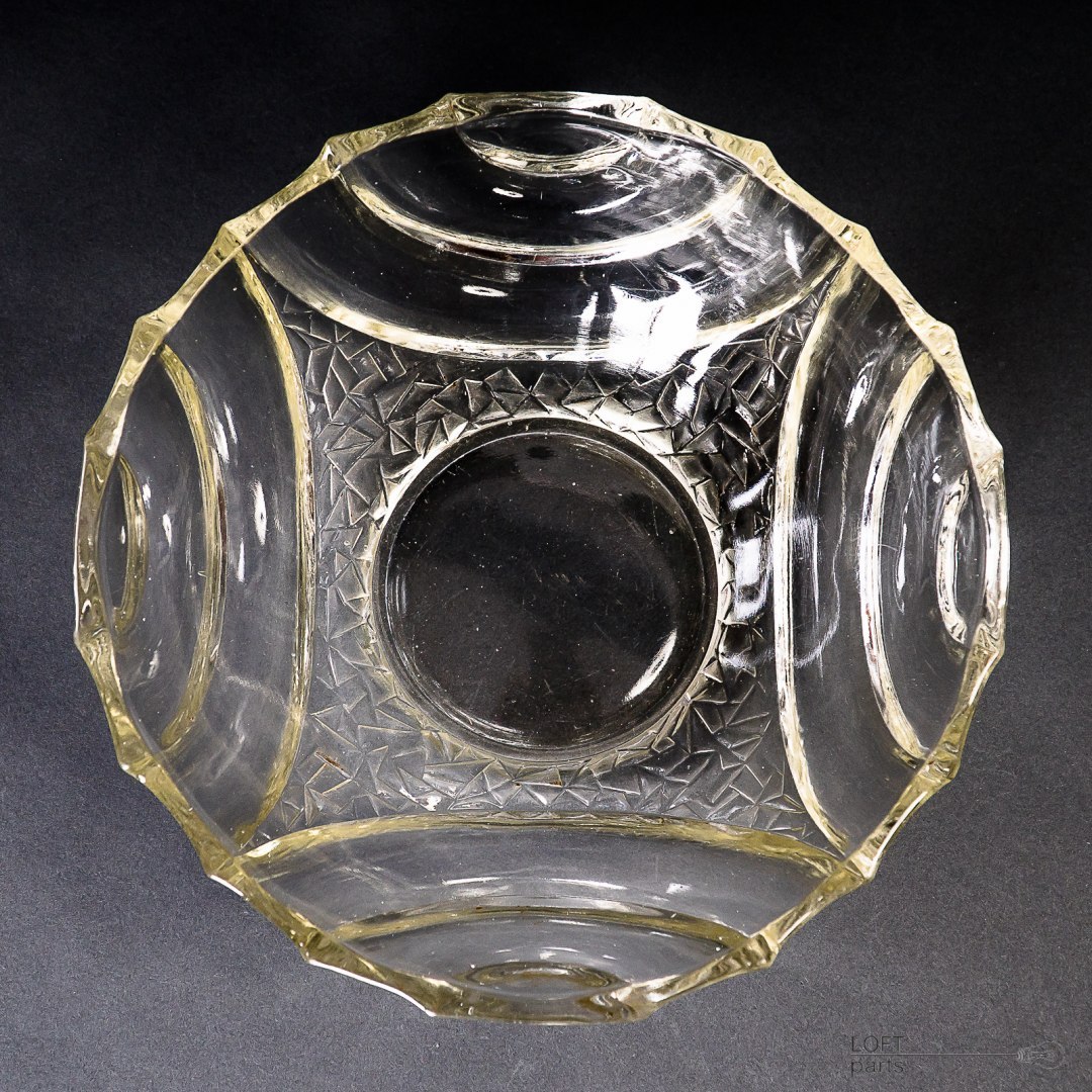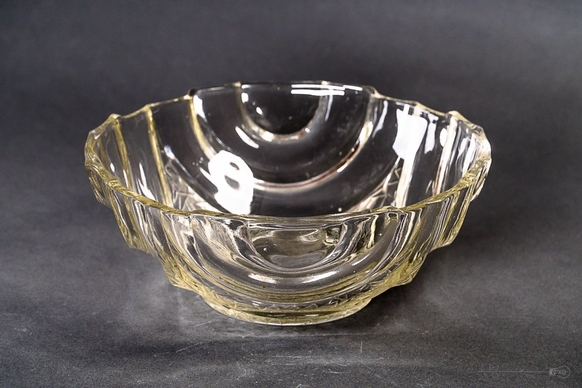Colourless ''Libelle'' bowl in Art Deco style produced by Walther Glas. In the catalogue of the glassworks it is numbered 46010.