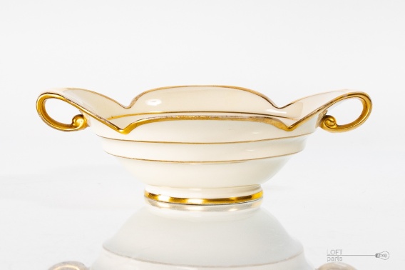 A bowl for jam produced in the R.S. Tillowitz factory in the pre-war period. The bowl has a delicate abrasion of the gold decoration (visible in the photo).