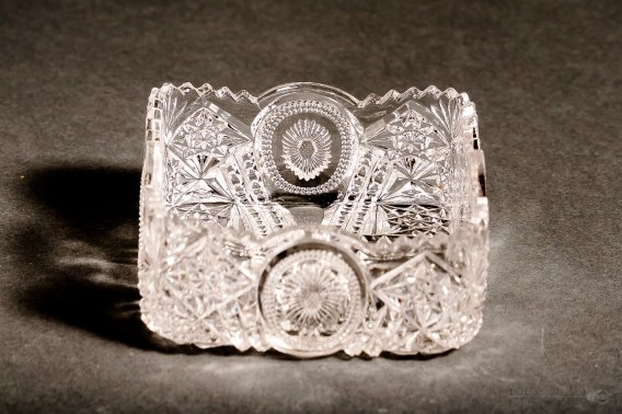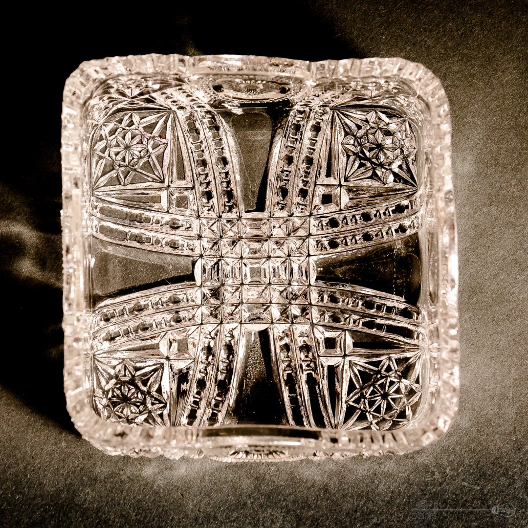 Bezbarwna kwadratowa miseczka. Niestety nie znam jej pochodzenia.