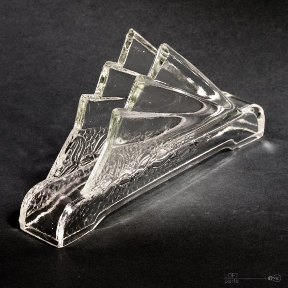 Bezbarwny serwetnik w stylu Art Deco wyprodukowany w Hucie Szkła Gospodarczego Hortensja.