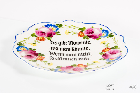 Okolicznościowa patera wyprodukowana w okresie przedwojennym w fabryce porcelany Carl Tielsch w Wałbrzychu (Altwasser).