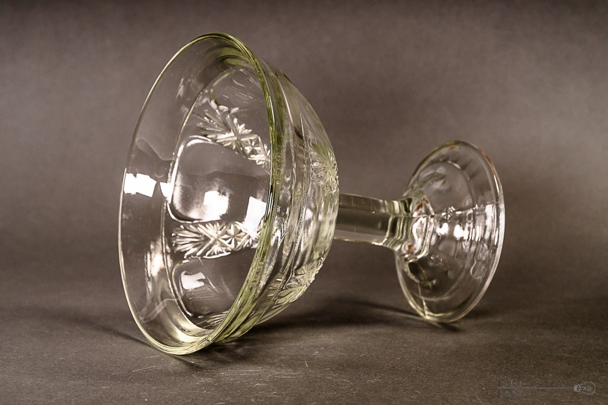 Colourless fruit plate produced in the Ząbkowice Household Glass Glassworks. In the catalogue of the glassworks it is numbered 1172/V.