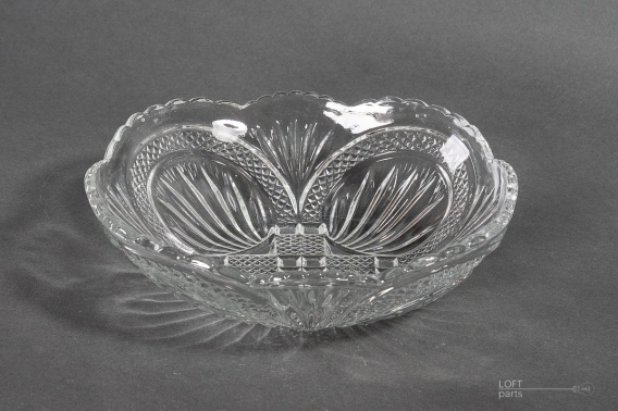 Colourless platter produced in the Ząbkowice Glassworks. In the catalogue of the glassworks, it is numbered 1226/VI.