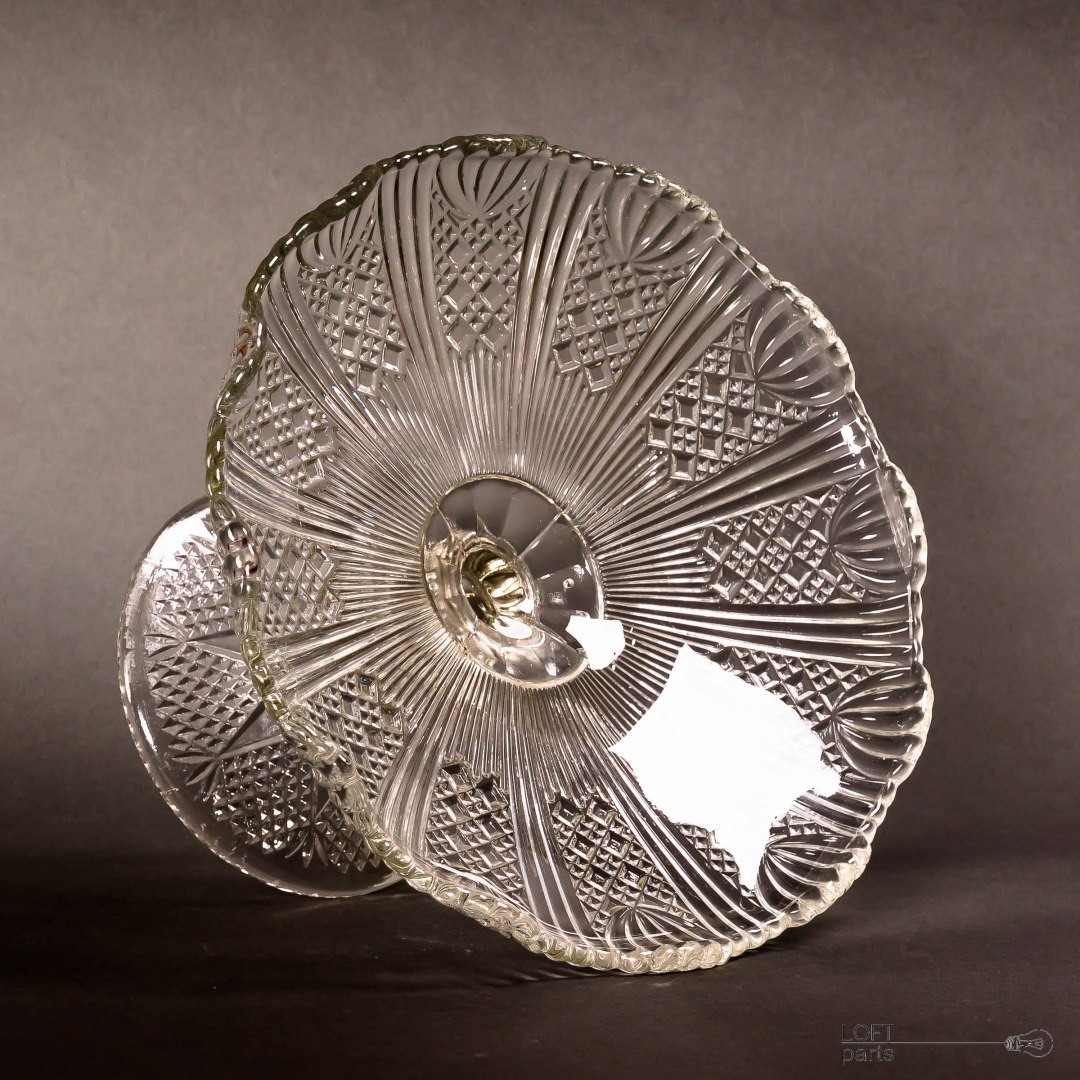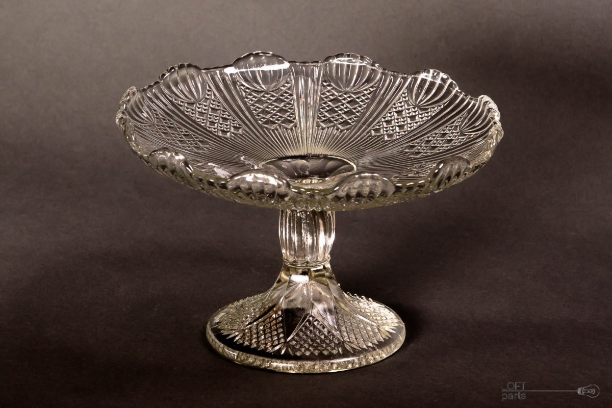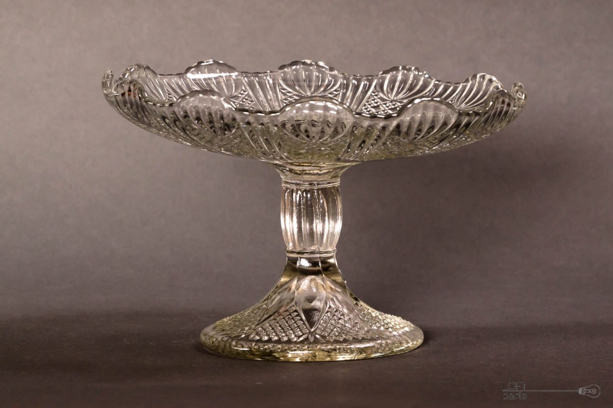 Colourless fruit stand produced in the Ząbkowice Household Glass Glassworks. In the catalogue of the steelworks it bears the number 320.
