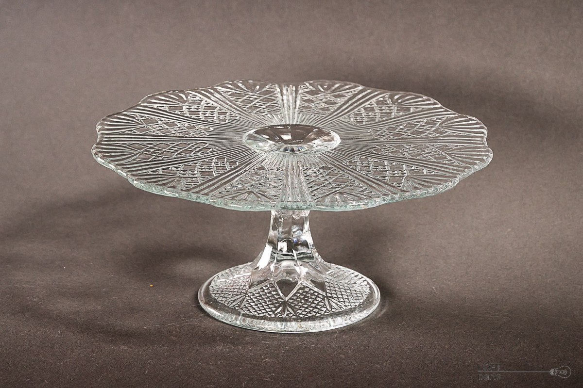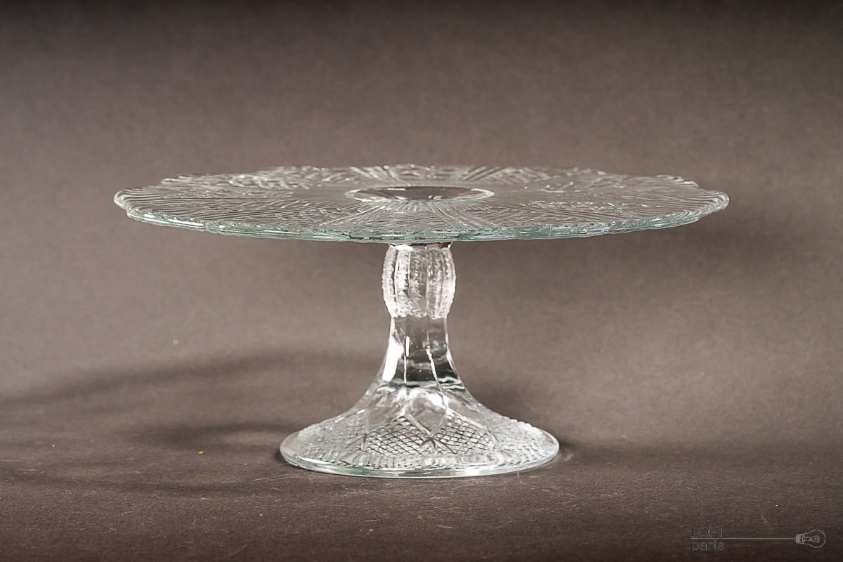 Bezbarwna patera/tortownica pochodząca z Huty Szkła Gospodarczego Ząbkowice.