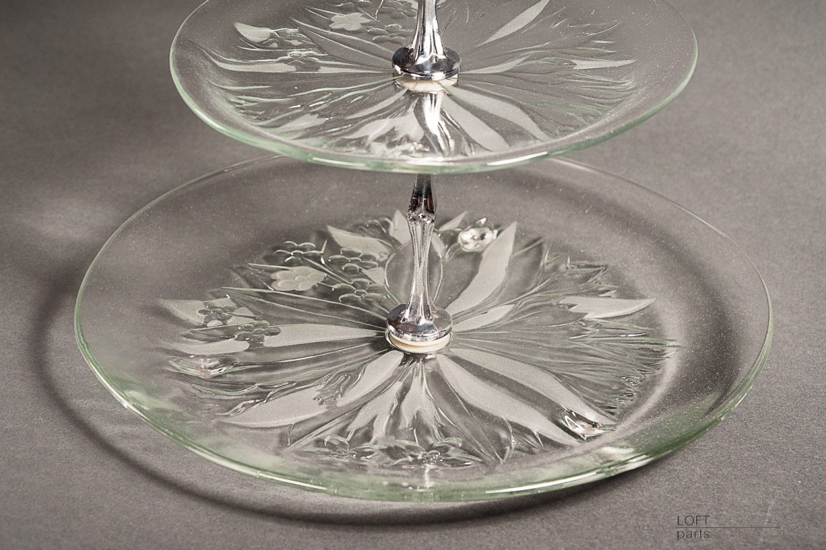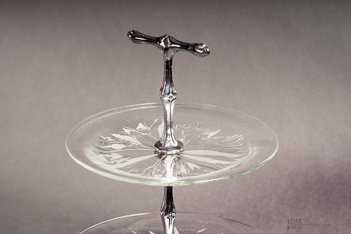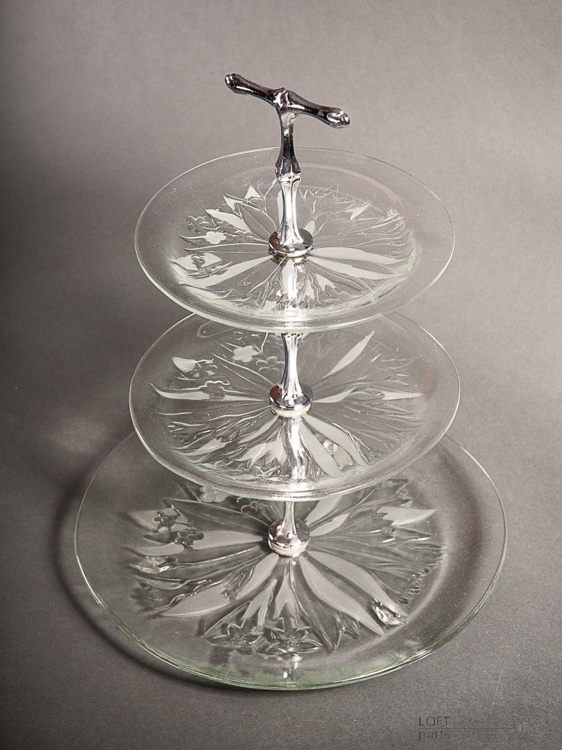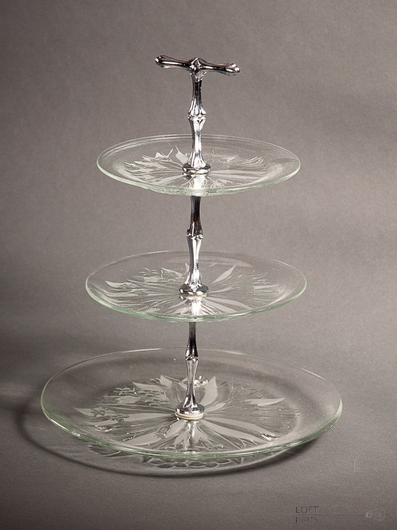 Colourless multi-storey cake stand "Pyramid" produced in the Ząbkowice Household Glass Glassworks.