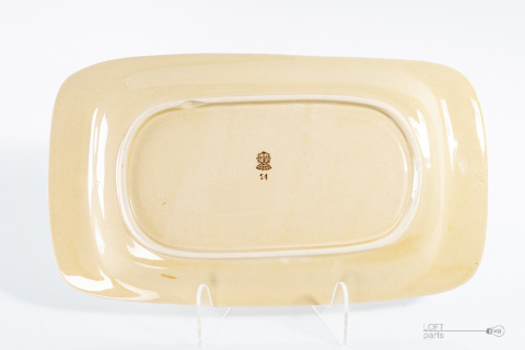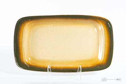Prostokątna beżowo brązowa patera wyprodukowana w Fabryce Porcelitu Tułowice.