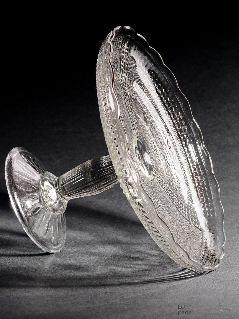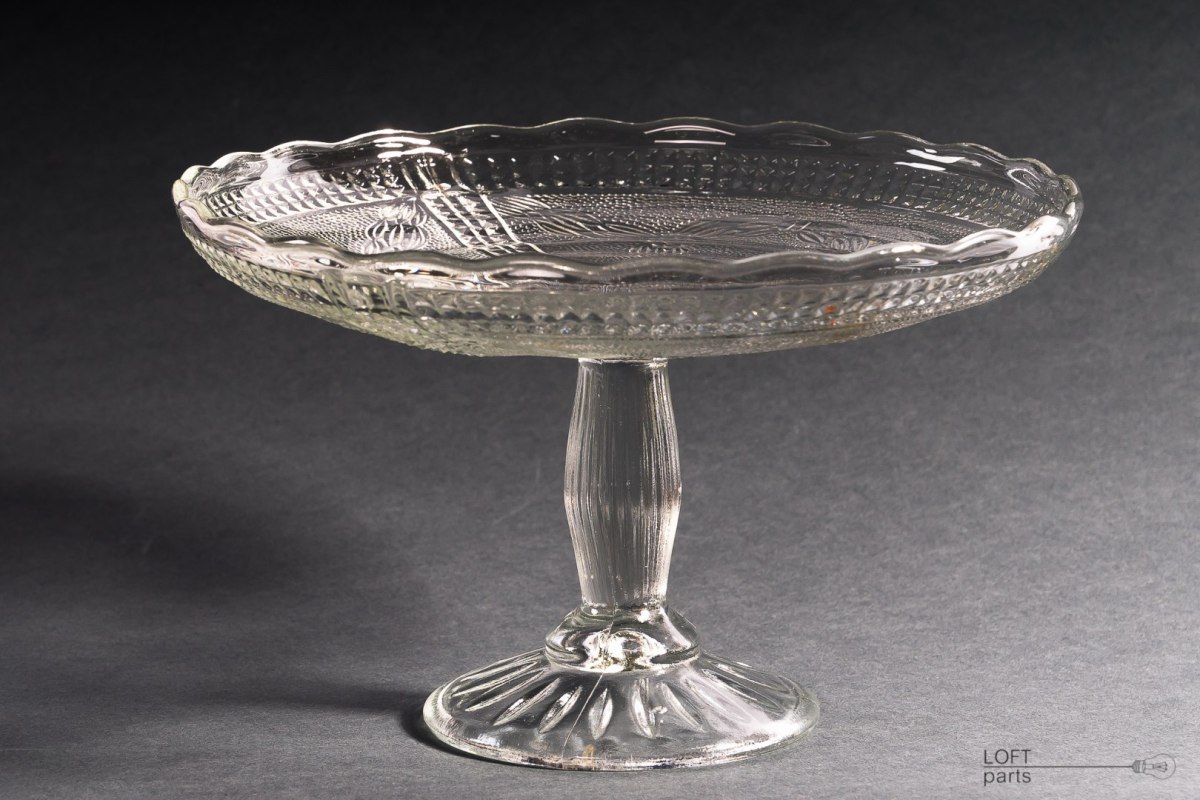 Colourless "Wreaths" platter produced in the Ząbkowice Household Glass Glassworks. In the catalogue of the glassworks it is numbered 2239 3/4.