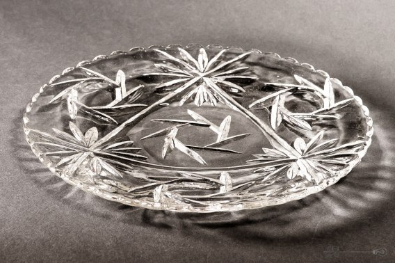 Bezbarwna patera wyprodukowana w Hucie Szkła Gospodarczego Ząbkowice.