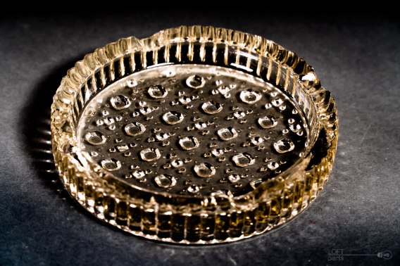 Bezbarwna popielniczka. Niestety nie znam jej pochodzenia. Popielniczka ma sporo drobnych ukruszeń na dolnej krawędzi.