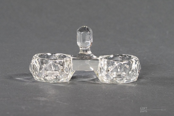 Bezbarwny przyprawnik/kabaret. Wyprodukowany w Hucie Szkła Gospodarczego Ząbkowice. W katalogu huty nosi numer 904.