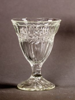 Bezbarwny pucharek wyprodukowany w Hucie Szkła Gospodarczego Ząbkowice.