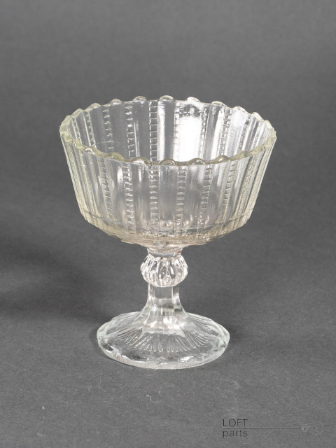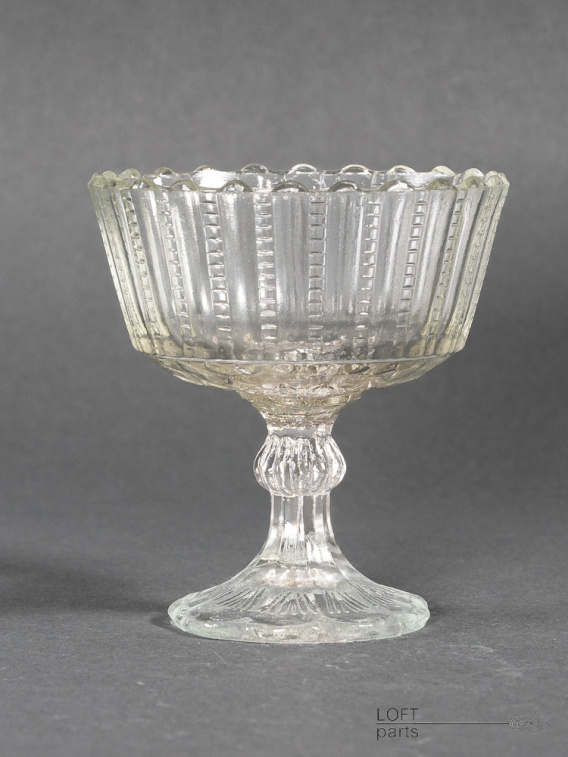 Bezbarwny pucharek wyprodukowany w Hucie Szkła Gospodarczego Ząbkowice. W katalogu huty nosi numer 391.