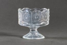 Bezbarwny pucharek z tzw. ''ukrytą twarzą kobiety''. Zaprojektowany przez Jana Sylwestra Drosta. Wyprodukowany w Hucie Szkła Gospodarczego Ząbkowice.