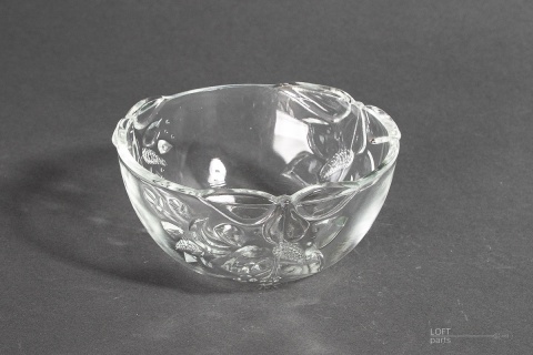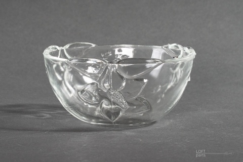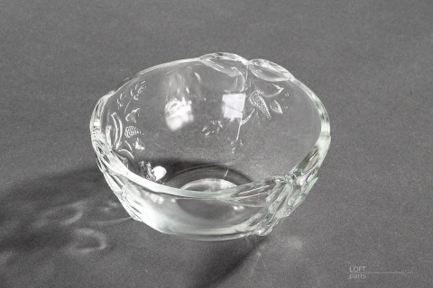 Colourless salad bowl ''Magnolia'' designed by Izabela Szkleniarz. Produced in the Ząbkowice Household Glassworks. In the catalogue of the glassworks, it bears the number 1600121.