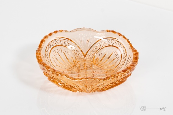 Rozalinowa salaterka wyprodukowana w Hucie Szkła Gospodarczego Ząbkowice. W katalogu huty nosi numer 1226/IV.