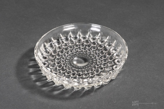 Bezbarwna salaterka ''Krople rosy'' wyprodukowana w Hucie Szkła Gospodarczego Ząbkowice. Zaprojektowana przez Erykę Trzewik-Drost.
