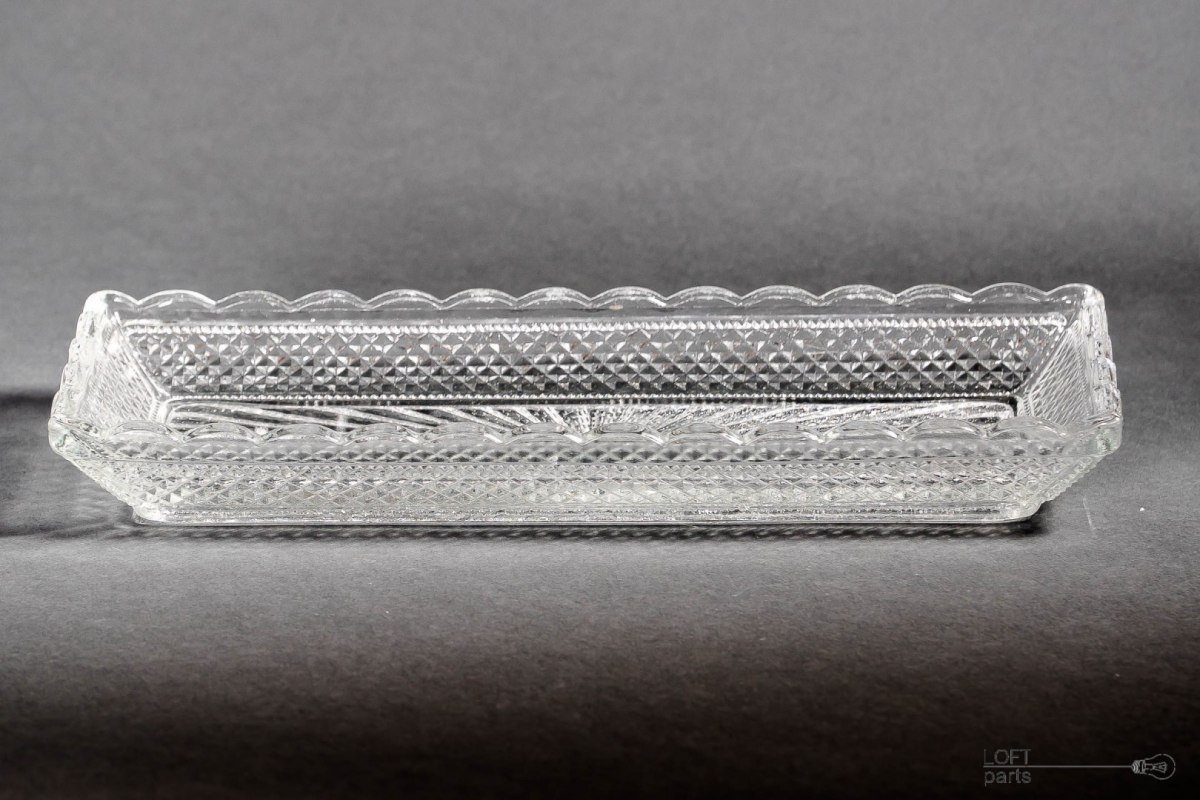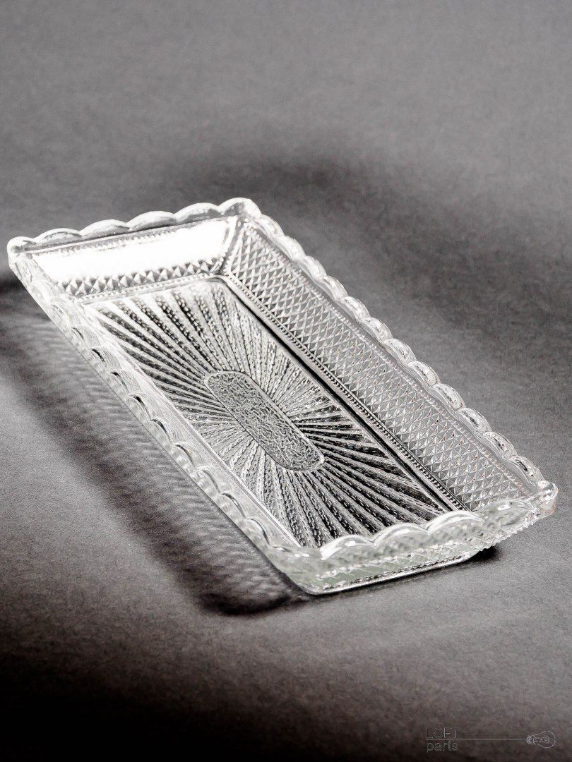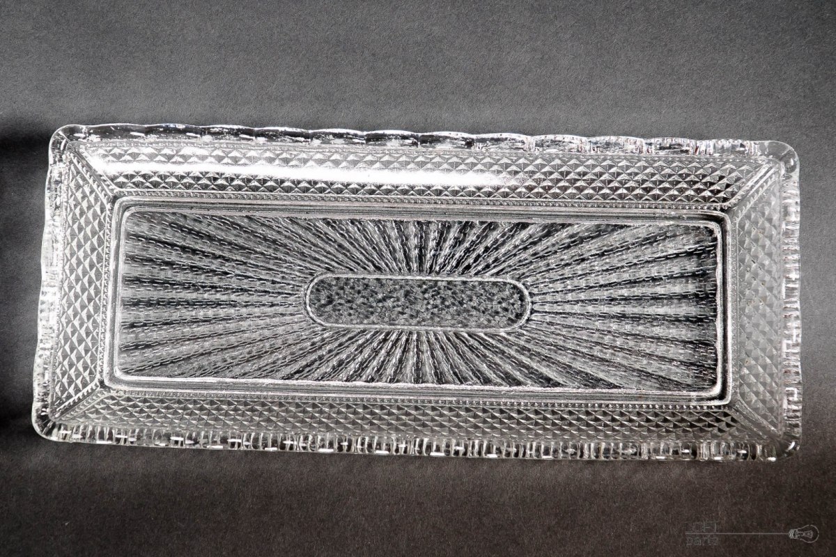 Bezbarwna prostokątna tacka. Niestety nie znam jej pochodzenia.