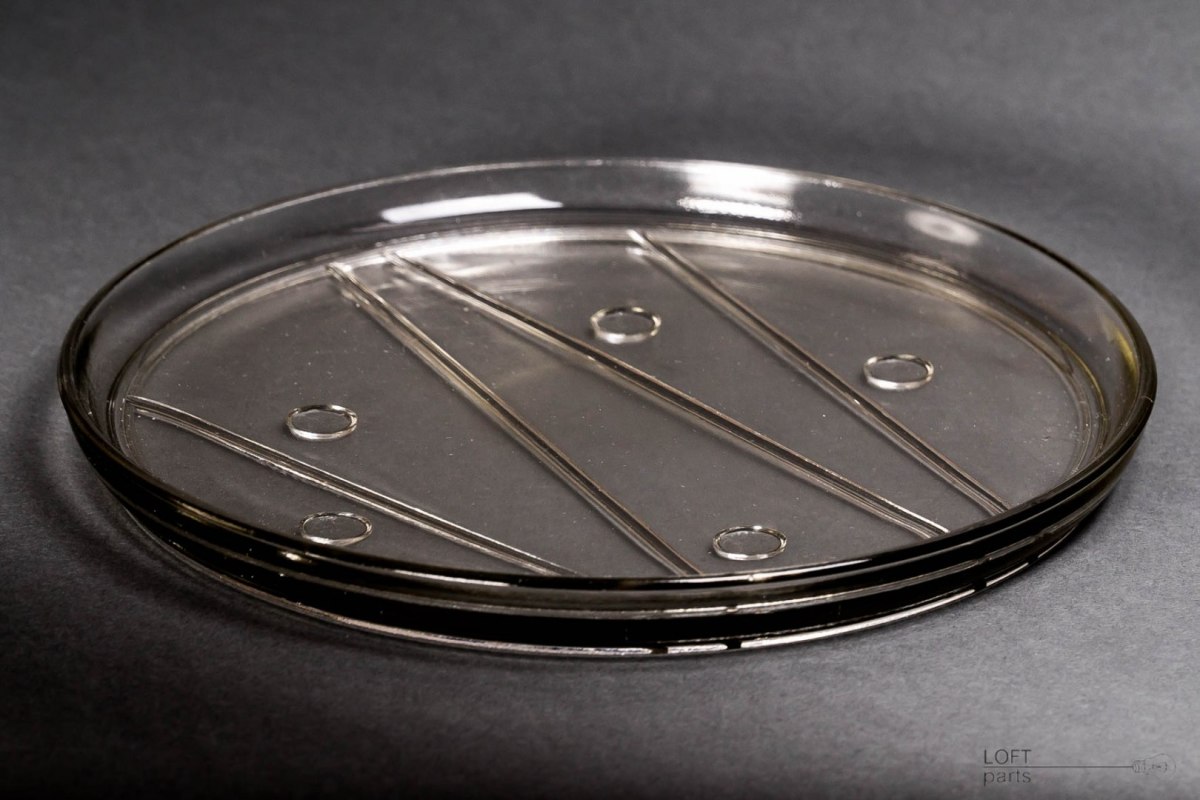 Bezbarwna tacka z lekkim dymnym odcieniem. Niestety nie znam jej pochodzenia.