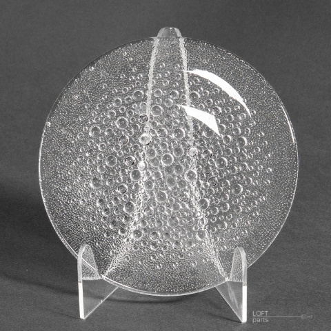 A colourless plate ''Asteroid'' designed by Jan Sylwester Drost. Produced in the Ząbkowice Household Glass Factory.