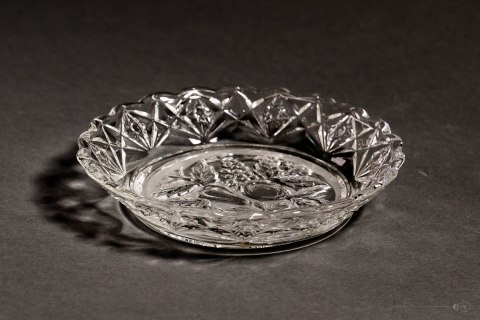 A colourless plate produced in the Hortensja Household Glass Factory. In the catalogue of the glassworks it bears the number 367.