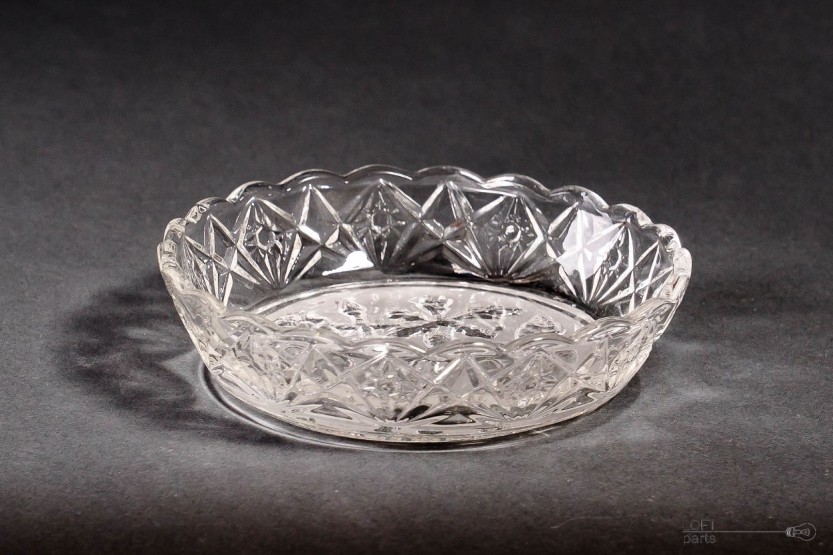 Colourless plate/salad bowl produced in the Hortensja Household Glass Glassworks. In the catalogue of the steelworks it bears the number 367.