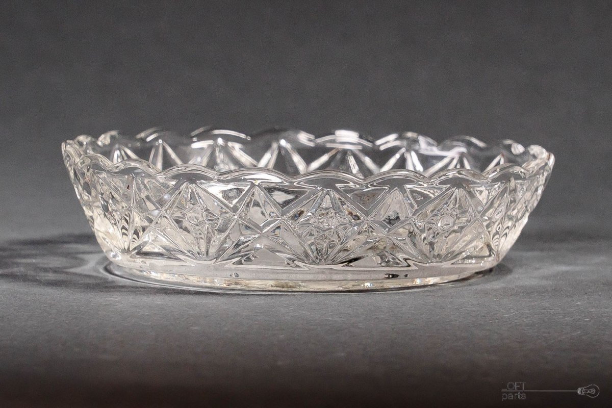 Colourless plate/salad bowl produced in the Hortensja Household Glass Glassworks.