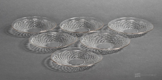 A set of six colourless plates designed by Bogdan Kupczyk. Produced in Ząbkowice Household Glass Glassworks. In the factory catalogue, they carry the number 6084.
