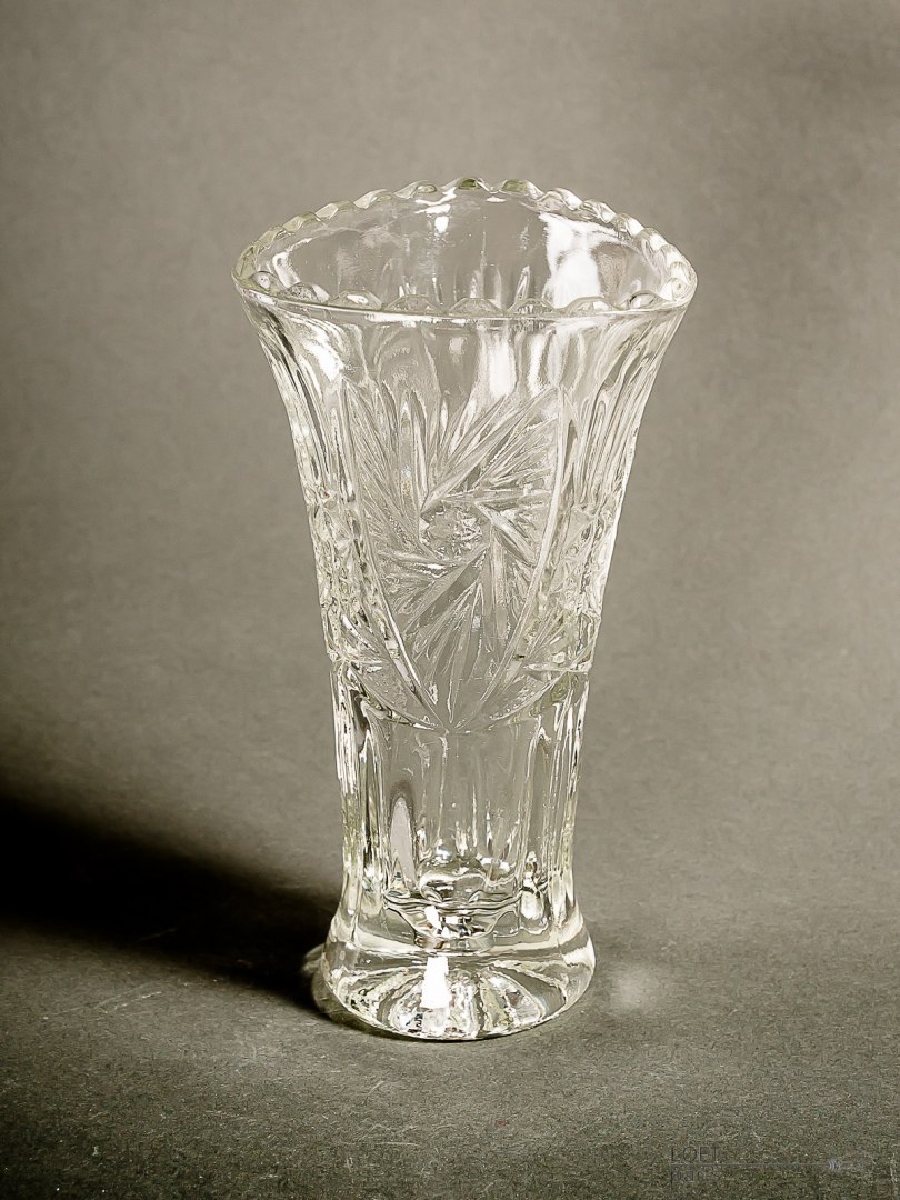 Bezbarwny wazon ''Rozety'' wyprodukowany w Hucie Szkła Gospodarczego Ząbkowice.
