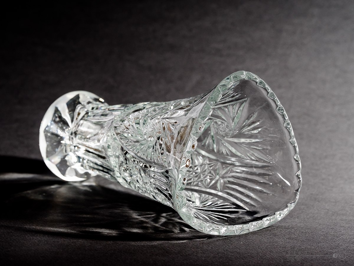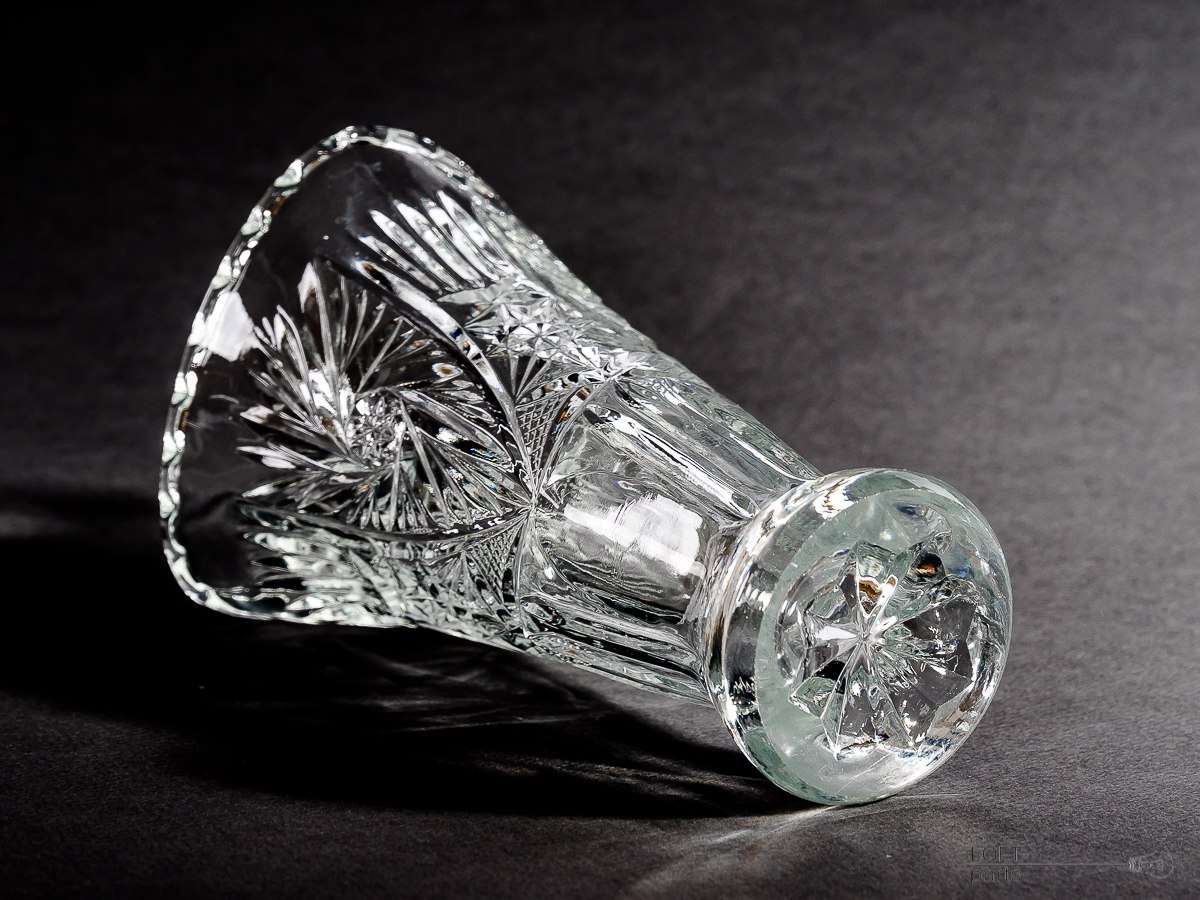 Bezbarwny wazon wyprodukowany w Hucie Szkła Gospodarczego Ząbkowice.