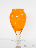 Orange vase with a colourless foot designed by Ludwik Fiedorowicz. Manufactured in the Ząbkowice Household Glass Factory.