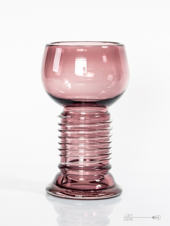 Fioletowy wazon z oplotem wyprodukowany w Hucie Szkła Tarnowiec.