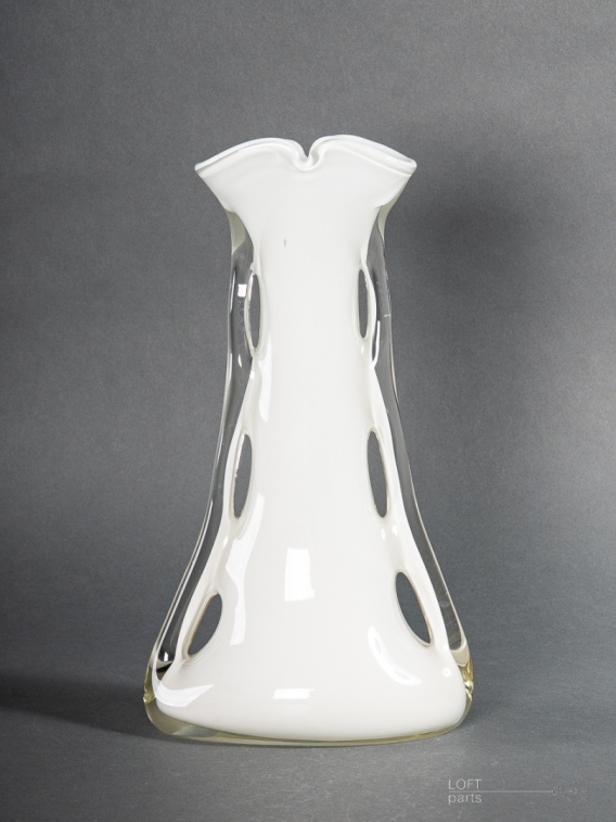 White and colourless ''Shark fin'' vase produced in Tarnowiec Glassworks.
