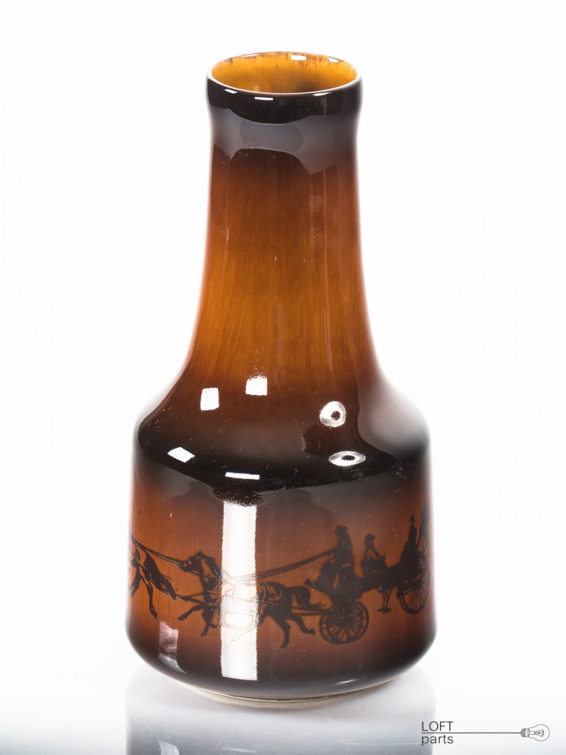 A vase with a horse-drawn carriage motif produced in the Tułowice Porcelite Factory.