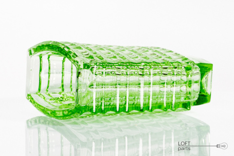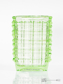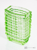A light green optical vase designed by Jan Sylwester Drost. Manufactured in the Ząbkowice Household Glass Factory. The vase has two micro damages under the upper edge.