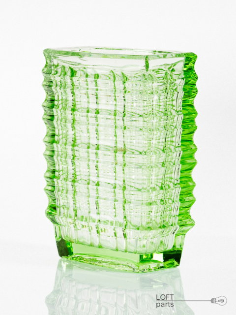 A light green optical vase designed by Jan Sylwester Drost. Manufactured in the Ząbkowice Household Glass Factory.