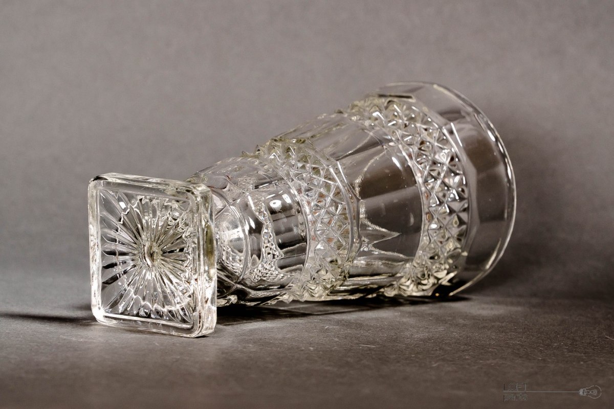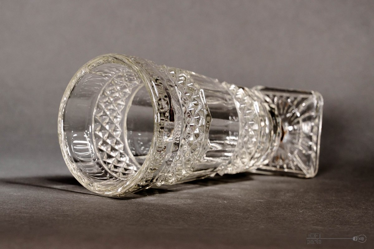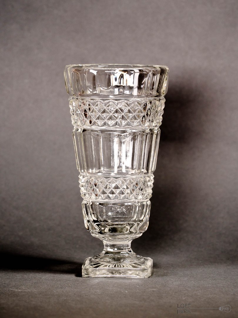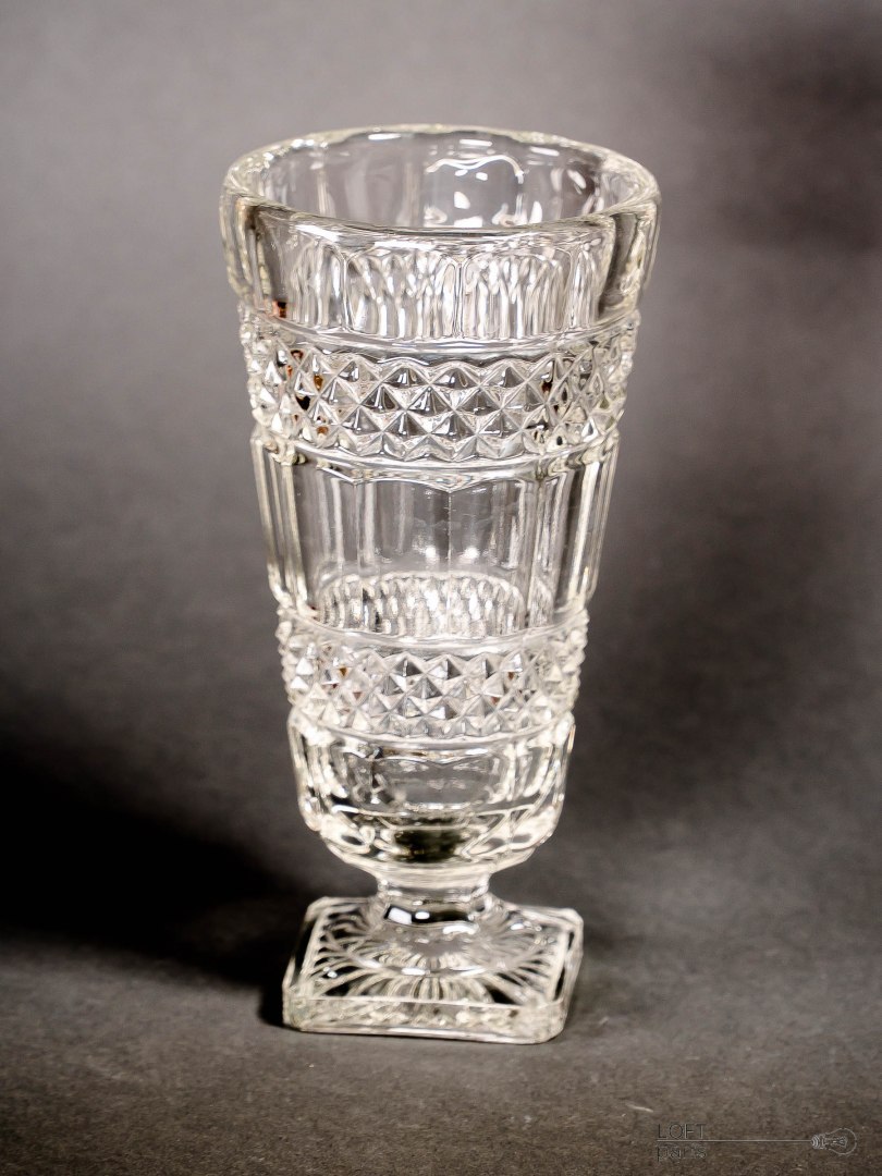 Bezbarwny wazon na stopie. Niestety nie znam jego pochodzenia.