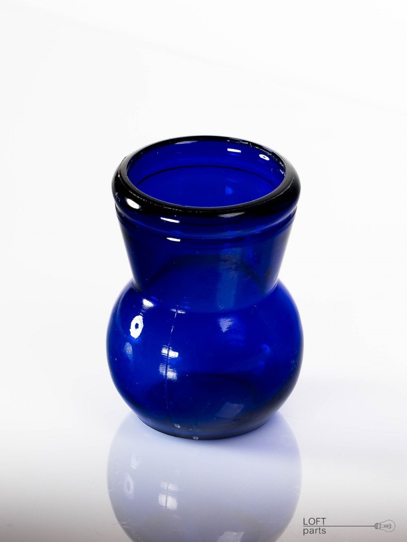 Kobaltowy wazonik wyprodukowany w Hucie Szkła Trzebiel.