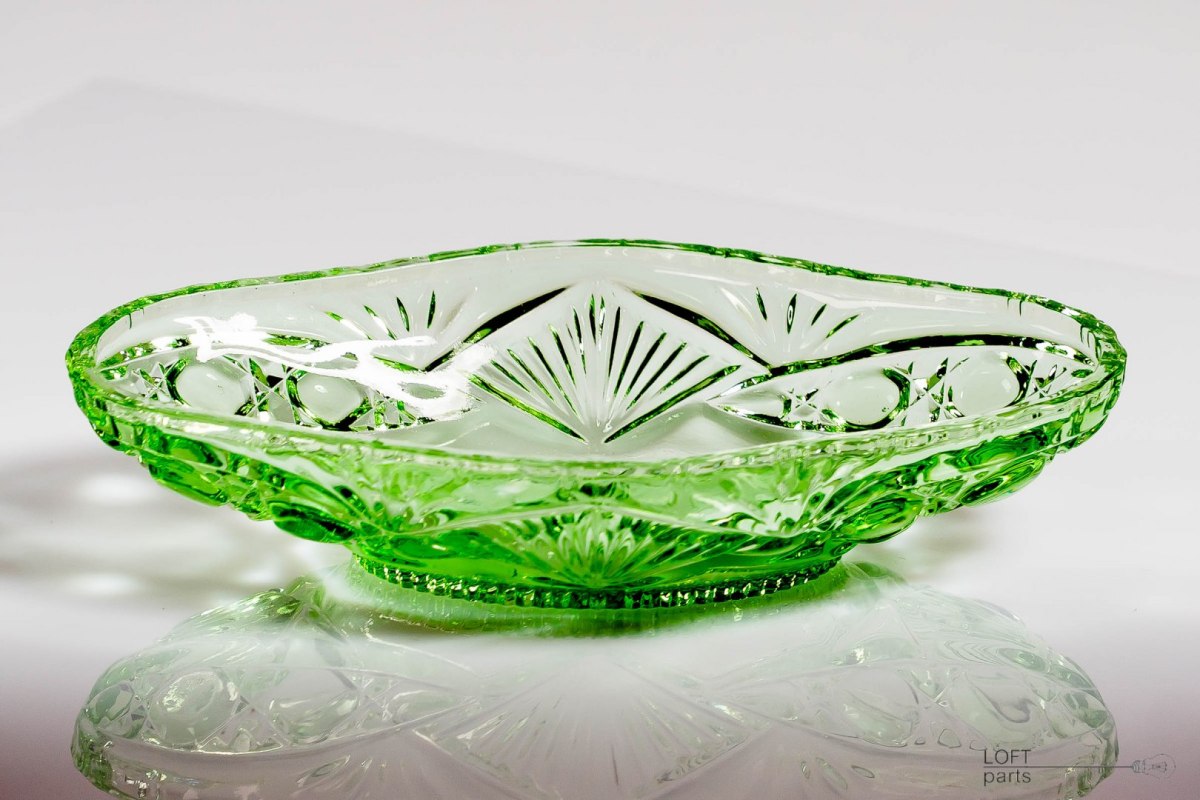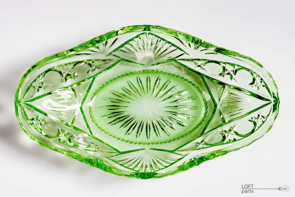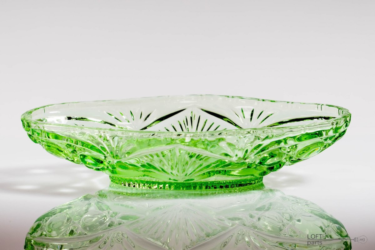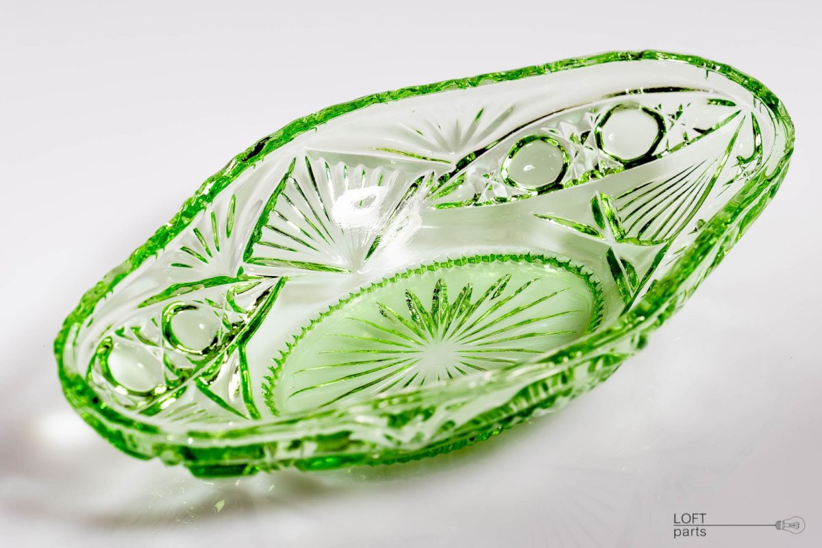Zielona żardiniera Riihimaki Glass. W katalogu huty nosi numer 7284.